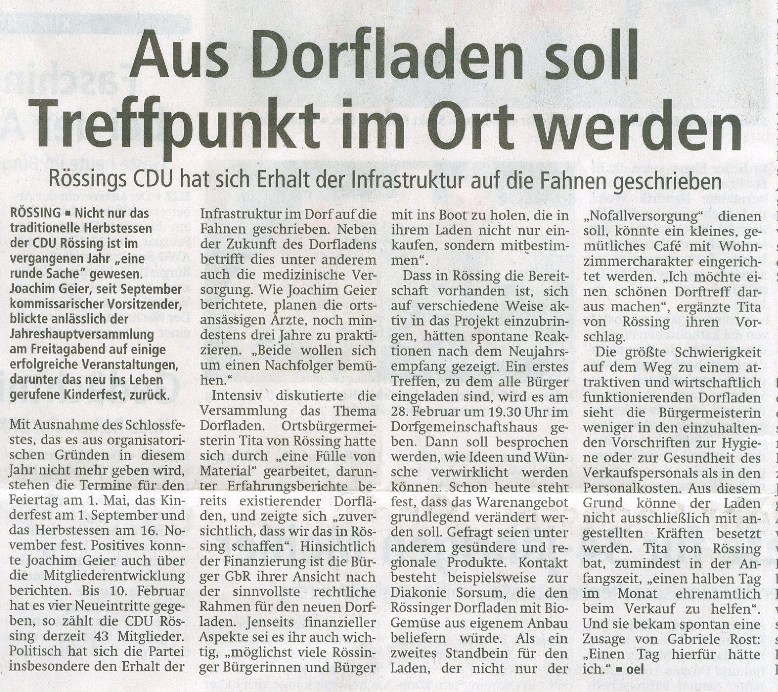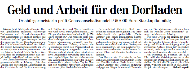 CDU Rössing prüft Genossenschaftsmodell für den Dorfladen